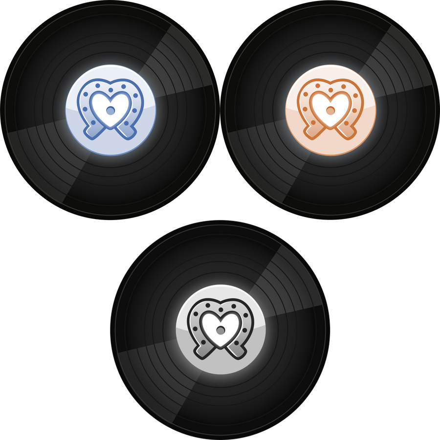 Shown with Vinyl Scratch juggling multiple logos of the same type. This button means this artist has multiple links on the same site. Clicking the button will take you to a separate PDF with more than one of the same link button (each going to a separate link)