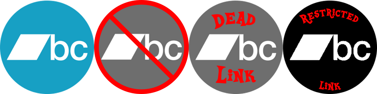 Shown with a greyscale image of the logo & text stating "Dead Link." This button means there was a link found, but the link doesn't work when clicked & can possibly only be viewed using the Wayback Machine (This only applies to Music Content Links). Clicking the link will take you to the most up-to-date link.